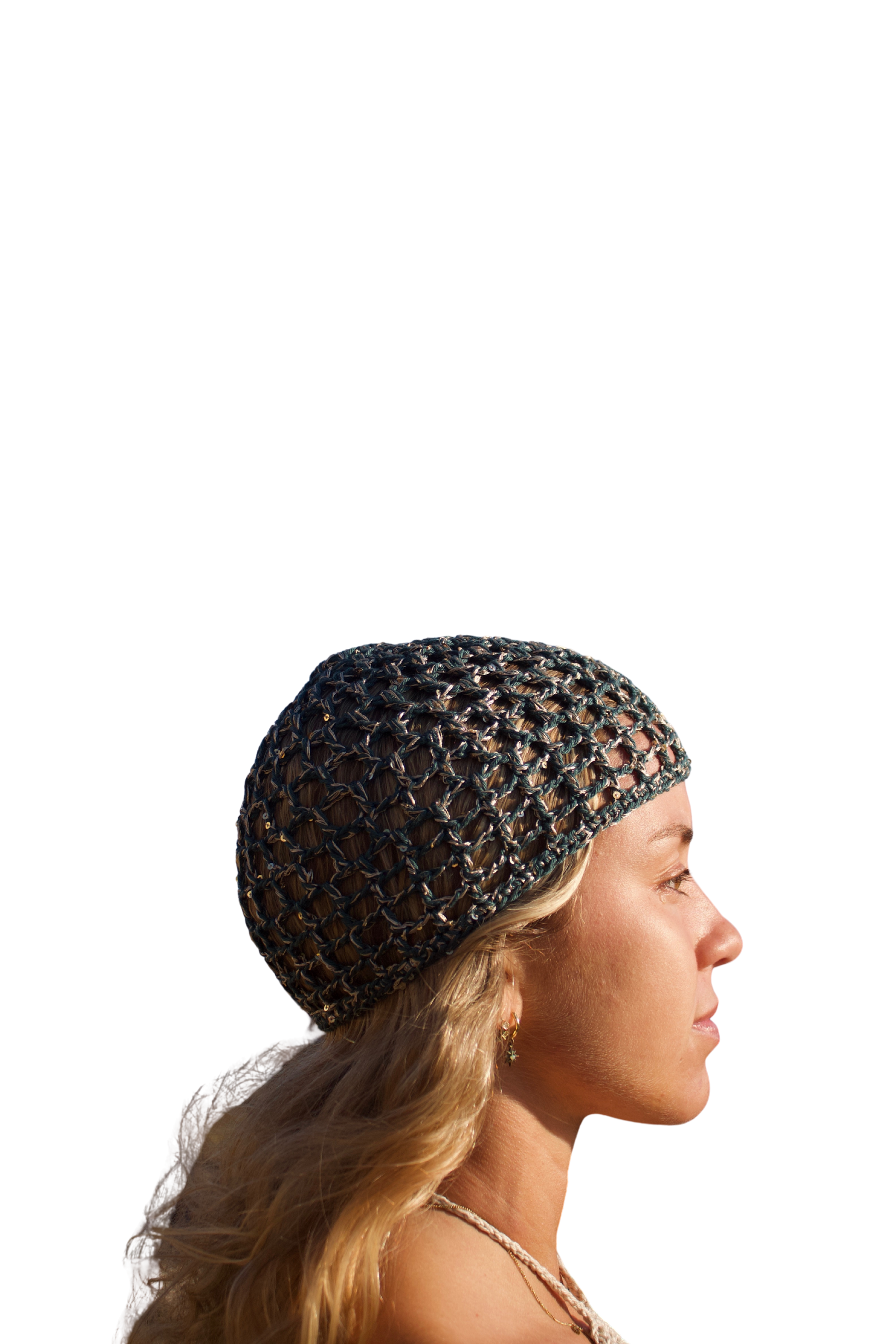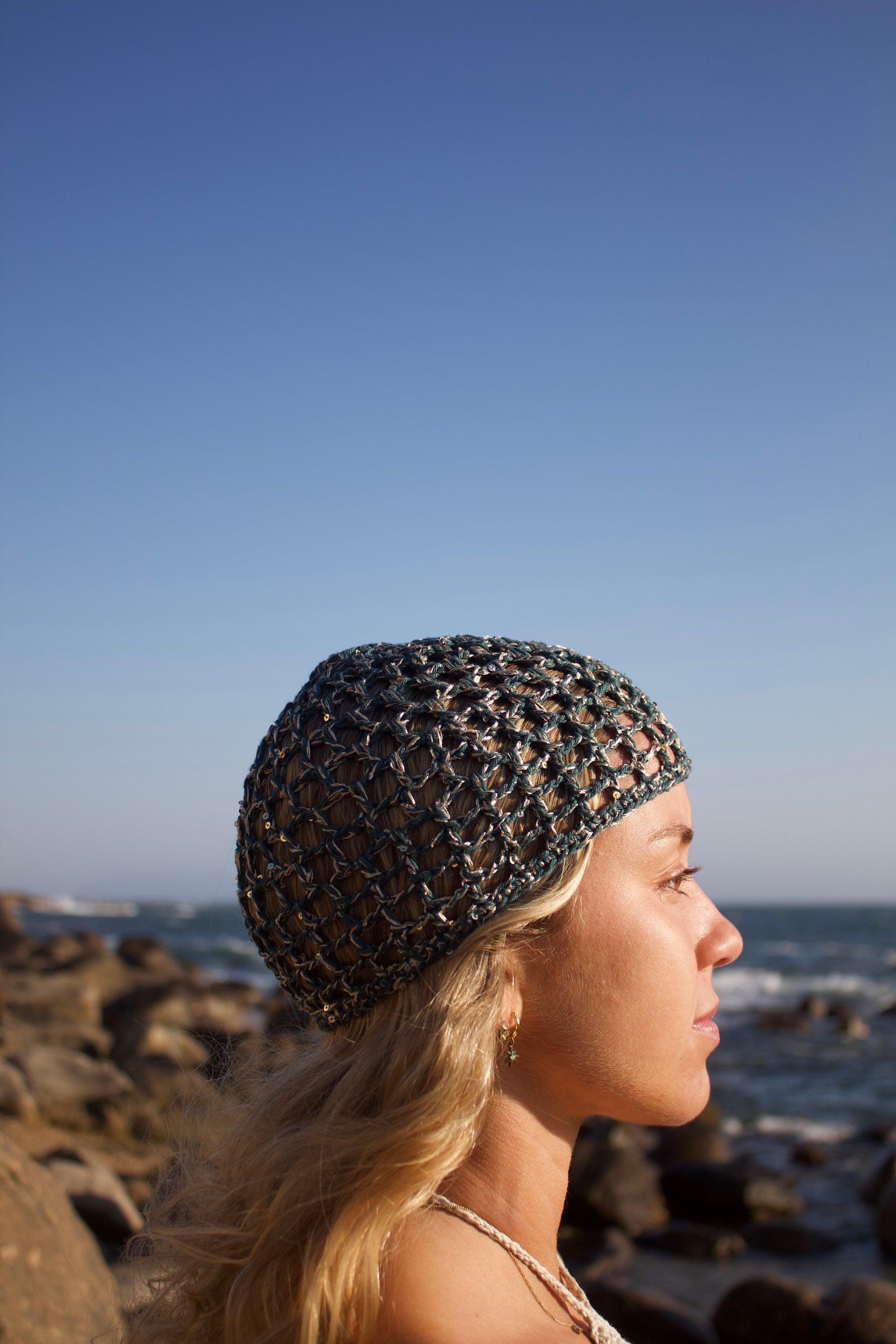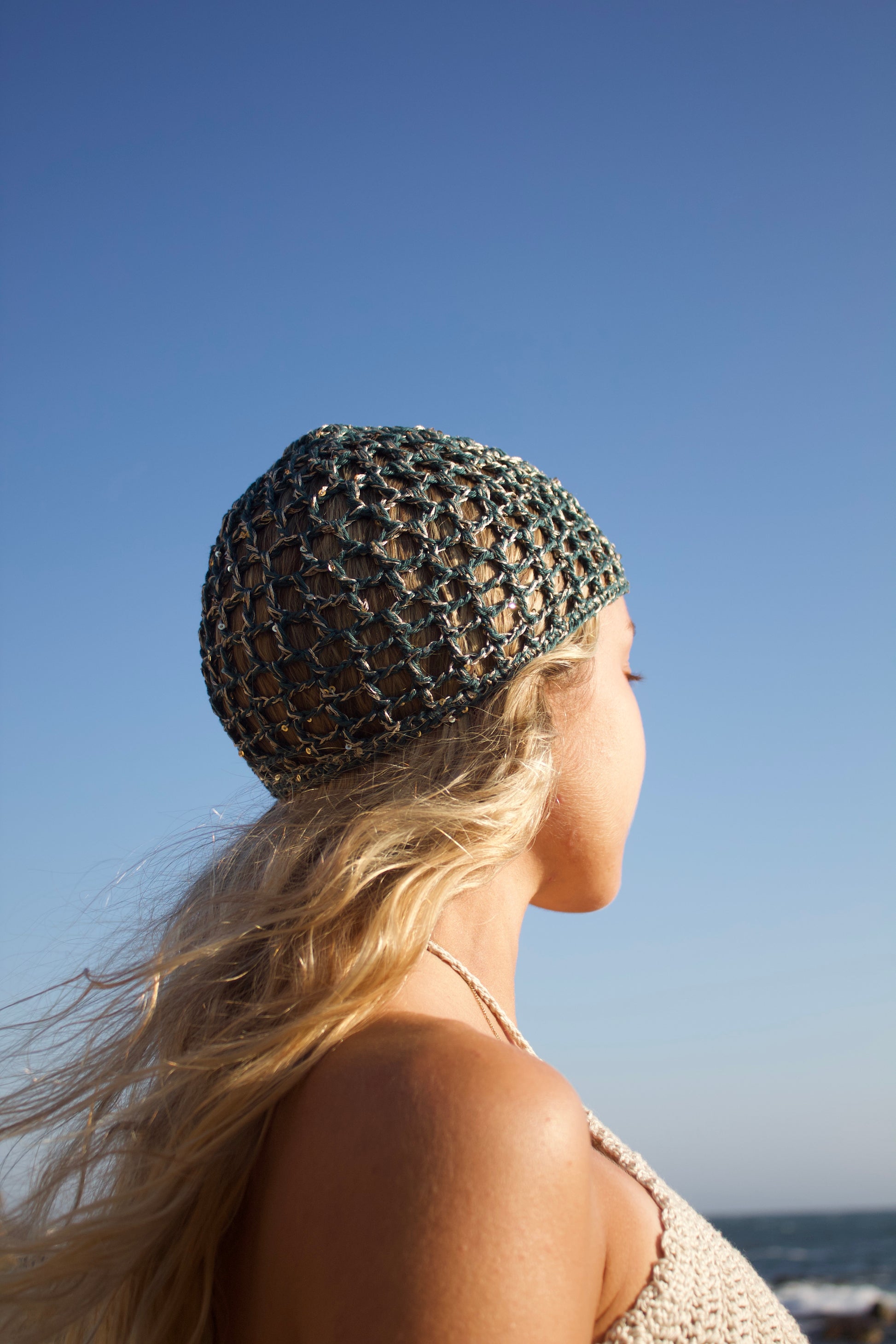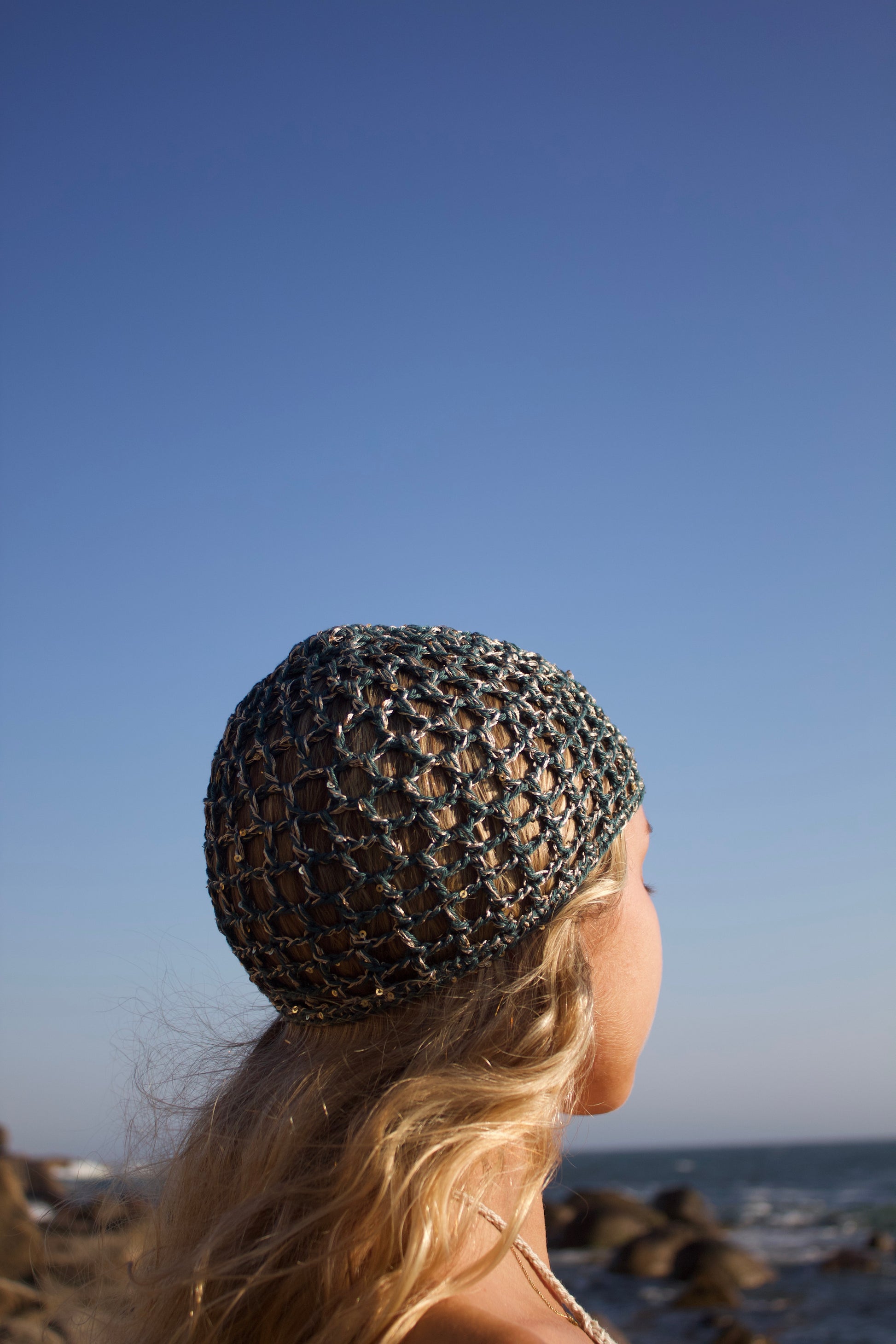 Touca Boho Azul Petróleo Brilhante